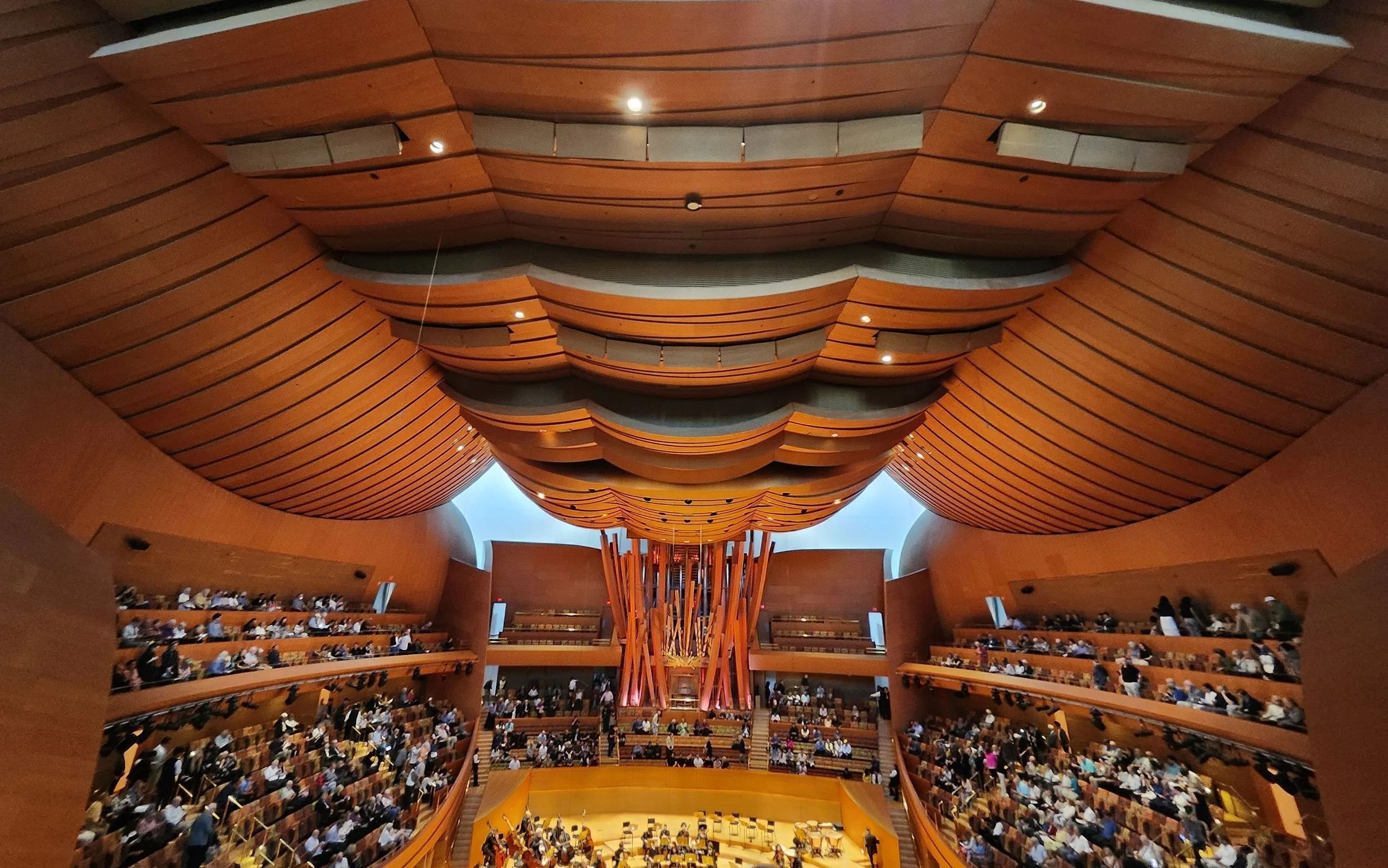 Day 1 – after a long sleep and free breakfast, we got picked up by Lorrian and Mike and drove to Downtown LA to the Walt Disney Concert Hall to see the LA Philharmonic – the program was Schubert, the Beethoven Piano Concerto, and Brahm’s 2nd Symphony – all fabulous. The hall was beautiful as you can see in the pics.