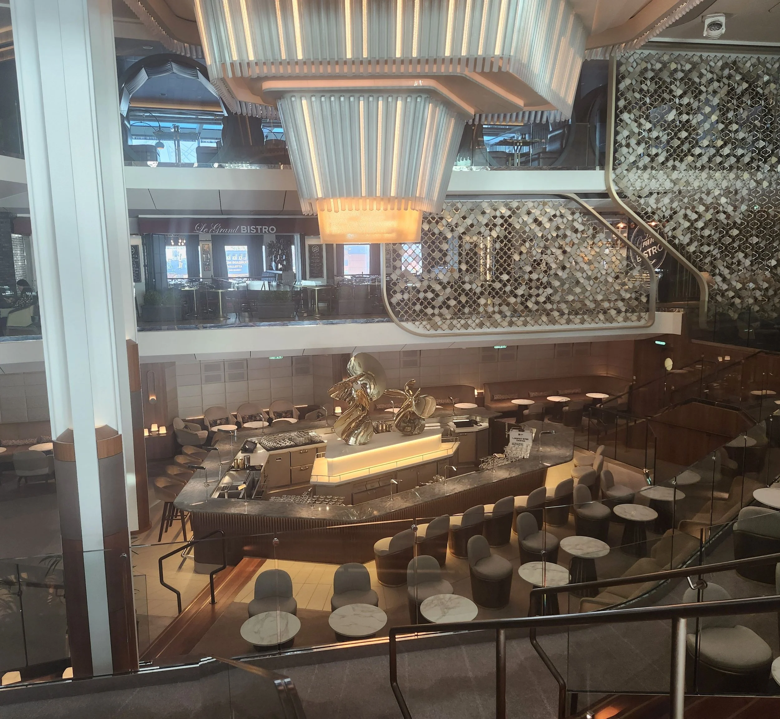 The Celebrity Ascent is a gorgeous ship – the Martini Bar is in the Grand Plaza and is a 3-storey affair. Although we stopped in other bars occasionally, it’s always our favourite. They know how to make a Vesper for Steve, and their Lemon Drop and Bananas Foster martinis are amazing.