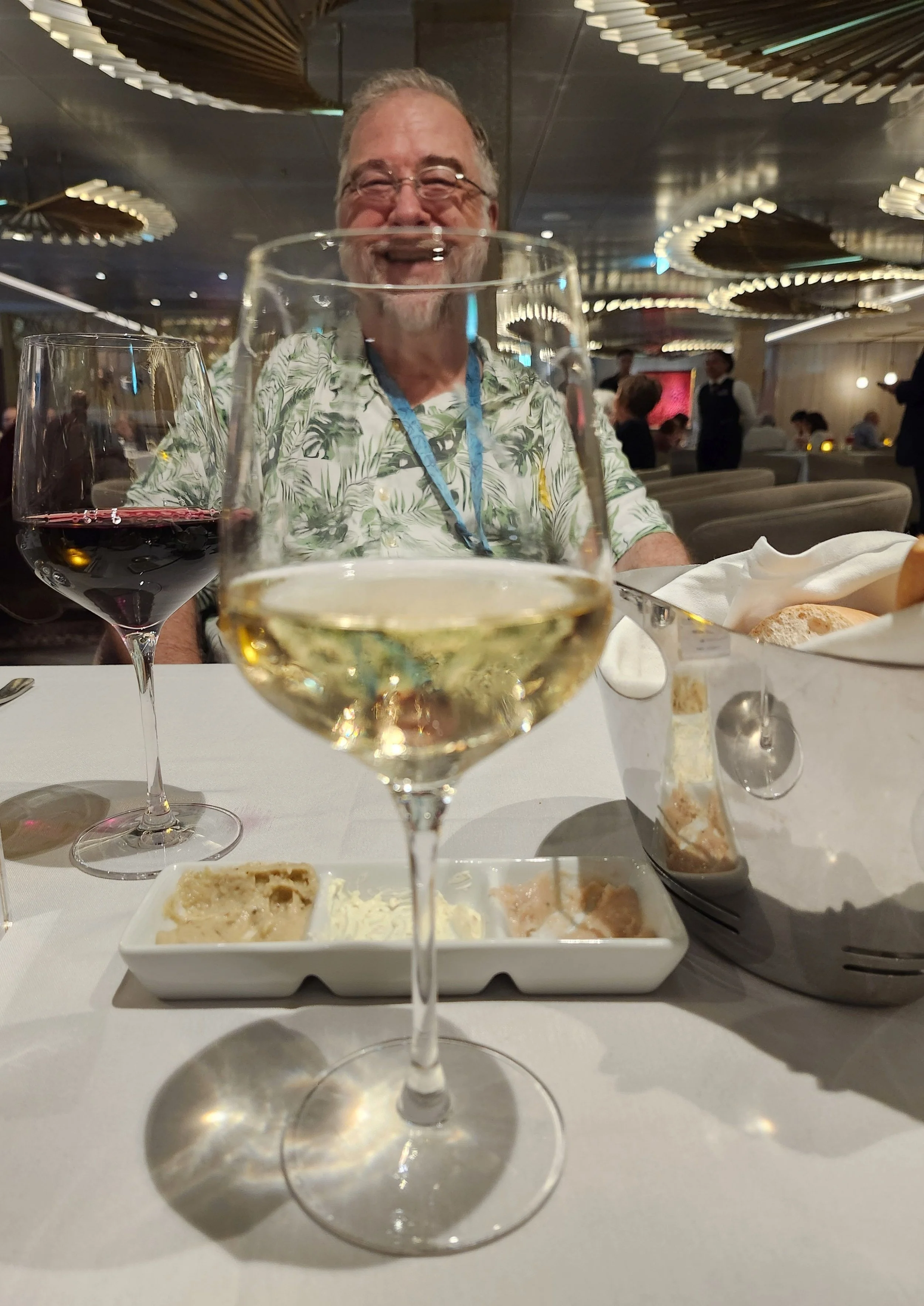 Our reserved boarding time was for noon and our only available departure time from the hotel was for 10:30 so we arrived early in the frigid weather. It was about 1C in Fort Lauderdale!! Fortunately, there was lots of seating space inside at the Pier and before we knew it, we were boarding the Ascent. We went off to our room, grabbed our keys, checked for the correctness of all our shore excursion tickets, checked in at our Muster Station, and then went8 to the Concierge Class lunch in Tuscan restaurant. (one of the 4 Main Dining Rooms) All MDR’s are stunning but Tuscan is especially pretty. At that point, our 2 cruises changed from wonderful to fabulous. We met our waiter Mary, who introduced herself as “a little Lamb”, and she was. We learned she was working in Cyprus MDR for every dinner on our cruise, so we just keep going there every night. You can order items from other MDR’s so you don’t have to try them all and experience new wait staff. Each night we were also treated like gold by our main waiter Mark, his assistant Mary, and our Sommelier Jonaris. It was so fun to get to know the team well and they were so helpful and knew our preferences by the 2nd night.